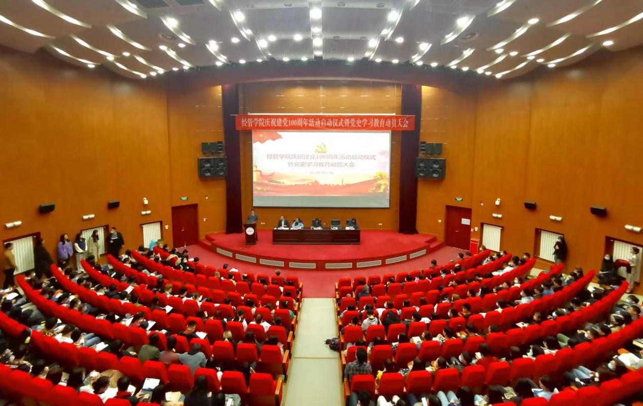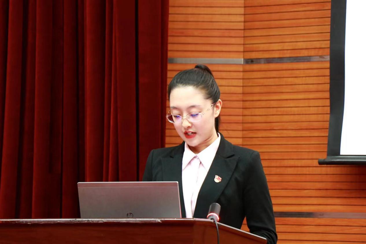 院学生会主席、青春榜样党员模范之星姚天琪发言。她表示,学生会将继续加强学生骨干队伍建设,充分发挥学生骨干在学生群体中的引领作用,积极塑造学生阳光心态,在党史学习教育和建党100周年活动中讲好红色故事、弘扬经管之声。我校党史团宣讲团成员、马克思主义扑克王 研究生王妍讲到,希望同学们要担起时代使命,努力成长为符合时代要求的社会主义建设者和接班人。两位青年学生站在党史学习、宣传的第一线,呼吁同学们为未来生活、奉献社会勤奋进取。