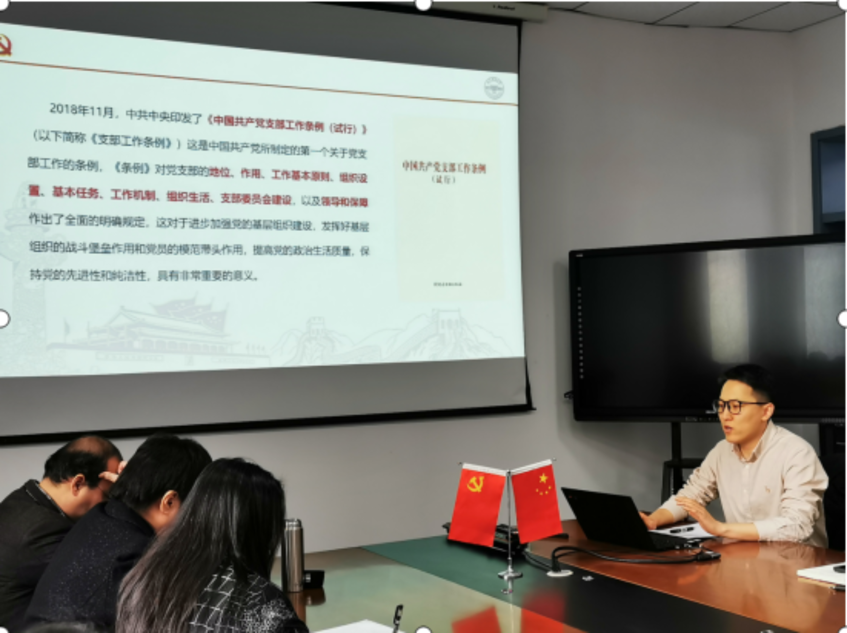 党委组织部组织科科长秦岭对《中国共产党支部工作条例(试行)》和《中国共产党普通高等学校基层组织工作条例》进行解读,详细介绍了“党的理论路线方针政策宣传”“党员教育管理监督及发展”“党的群众宣传教育服务”“服务改革发展与组织联动”等工作,帮助支部书记和委员进一步明晰新时代党支部工作任务及建设的方向与路径。