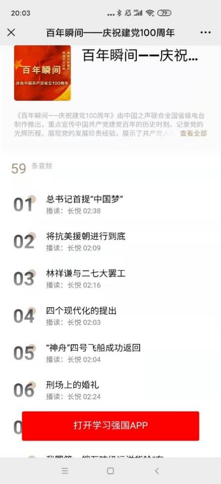 为了提升学习效果,工商支部党员在认真学习总书记的讲话、学校的相关文件之余,还开展了倾听《百年瞬间——庆祝建党100周年》音频节目的活动。《百年瞬间——庆祝建党100周年》是中国之声联合全国省级电台制作推出,重点宣传中国共产党建党百年的历史时刻,记录党的光辉历程,展现党的发展的珍贵经验的专题节目。节目内容丰富,制作精良,每一集短小精悍,既打动人心又便于学习。