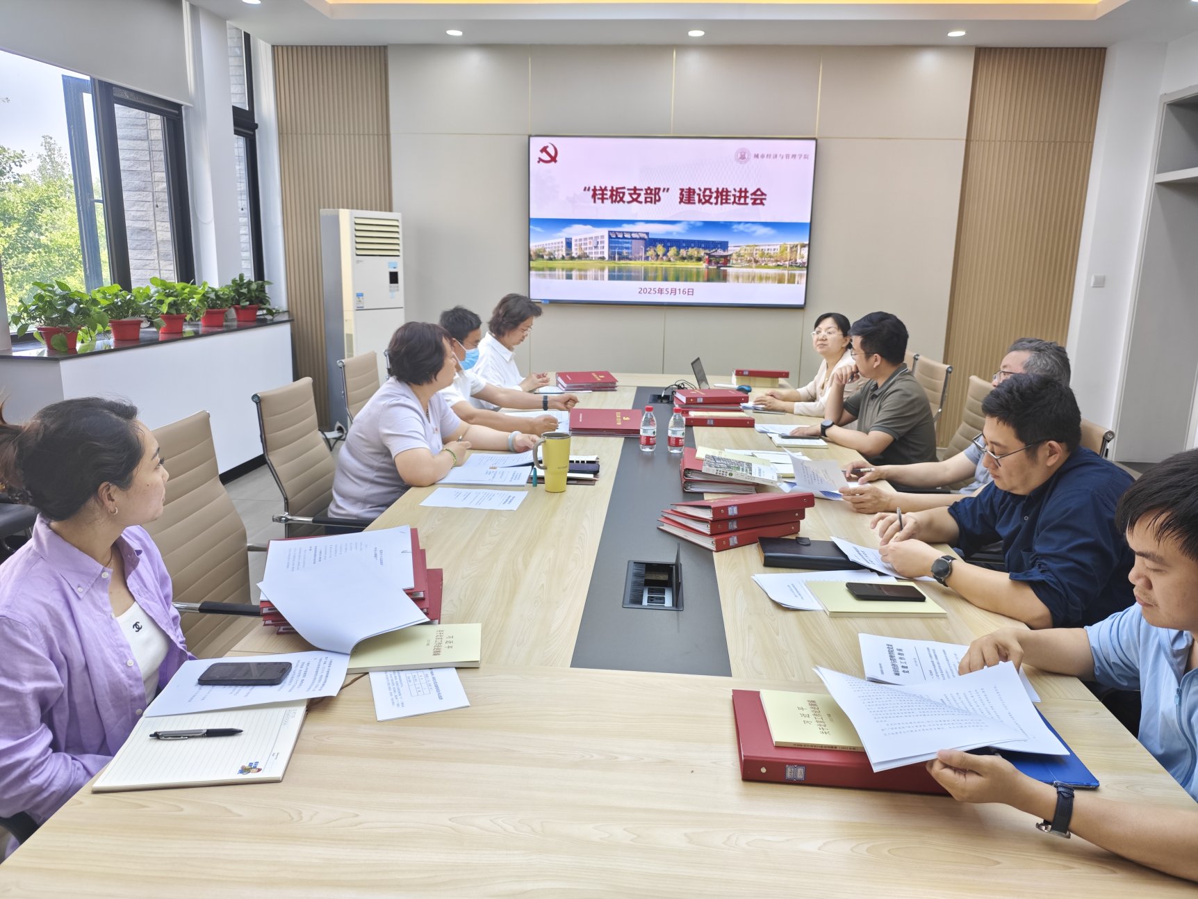 会上,工程管理系教师党支部书记戚振强就“样板支部”建设进展情况进行了汇报,重点围绕当前支部创建中的特色亮点、重点任务以及存在问题进行了分析。