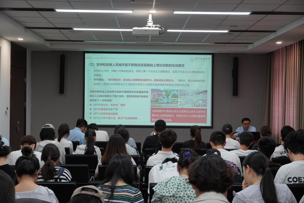 陈红兵围绕“‘人民城市’重要理念的提出”“‘人民城市’重要理念的科学内涵及实践路径”“‘人民城市’建设的京华实践”和“北建大服务‘人民城市’建设的实践路径”四个方面深入浅出地为学生授课。他表示,“人民城市”重要理念是习近平新时代中国特色社会主义思想的重要组成部分,是习近平关于城市工作一系列新理念新思想新战略的高度凝练和集中概括,是中国共产党关于城市治理理论创新的最新成果。