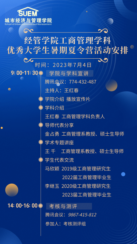工商管理学科由学科负责人王红春教授主持,围绕工商管理学科发展、研究方向、招生就业情况、学术情况等进行了详细介绍,金占勇教授就研究生培养问题与营员们进行了分享,王千教授以“数字文创的价值创造”为题进行了专题讲座,两位工商管理优秀毕业生与营员分享了研究生学习和生活感受。