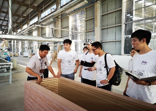 在探沂镇常务副镇长咸彦英的带领下,实践团一行人先后参观安信美家木业加工生产线、北方木都与泰森日盛门业厂。咸镇长对于北京建筑大学实践团队的来访表示热烈欢迎,同时连同工作人员向实践团成员介绍关于探沂特色木业小镇的发展历史、概况与未来设想,并从各个角度解释费县发展木业产业的优势所在。