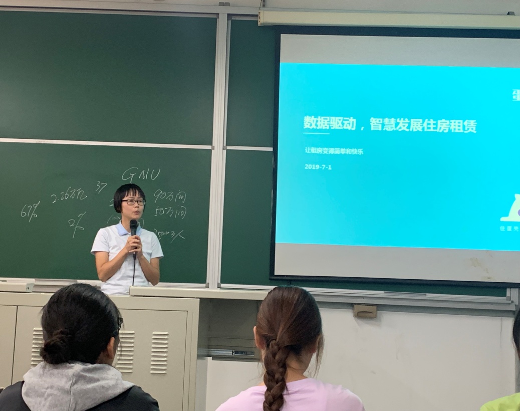 2019年7月1日北京建筑大学2018级工商管理专业学生正式开始了专业认识实习。上午9:00,首先由经济与管理工程扑克王 工商管理系系主任张丽老师详细地说明了专业认识实习重要性、内容和相关要求等。随后北京房地产中介协会秘书长赵老师进行讲座,题目为“房地产租赁经营的几个问题”,系统地阐述了我国房地产租赁经营来龙去脉,以及未来发展,重点为同学探讨了存在的问题,让同学们对我国房地产租赁经营有了清楚地认识。接下来,紫梧桐(北京)资产管理有限公司旗下品牌“蛋壳公寓”高级行业研究员马亚男为同学带来关于互联网长租公寓运营的讲座,让同学们对未来房地产租赁发展趋势有了感性认识。