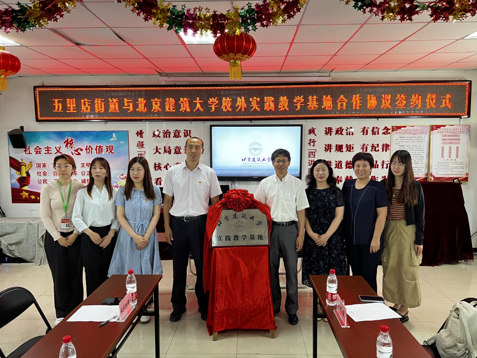2023年7月5日,扑克王官网 社会工作系与北京市丰台区五里店街道举行校外实践教学基地签约仪式,并共同为实践教学基地揭牌。扑克王官网 院长孙成双、副院长张丽、社会工作系主任晁霞、专任教师焦思琪,五里店街道党工委副书记邢军、五里店街道党群工作办公室副主任赵越、五里店街道党群工作办公室科员马荣华、北大地西区社区党委副书记冷亚玲等出席仪式。北京建筑大学47名社会工作专业学生参加了活动。