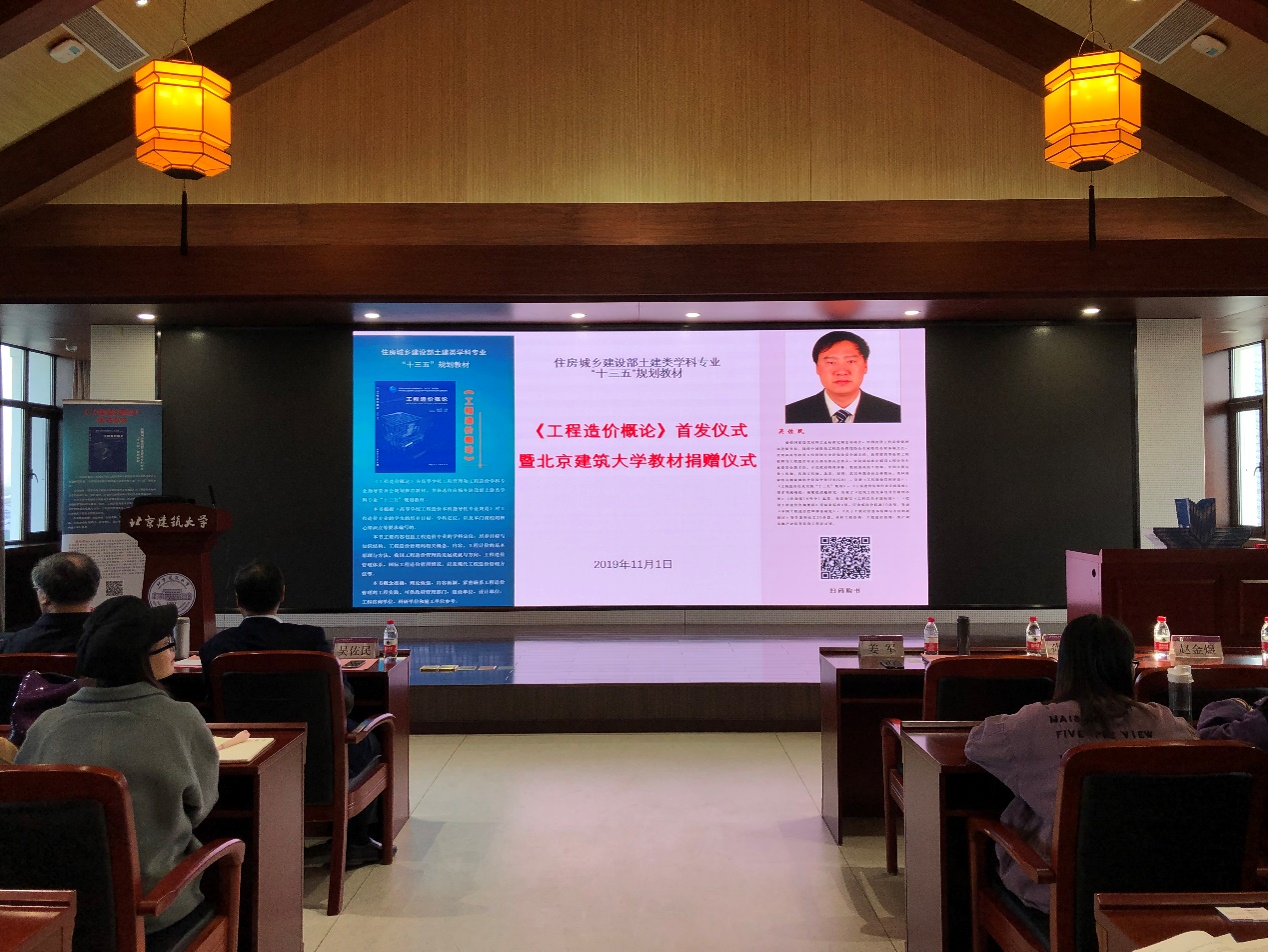 2019年11月1日下午3:30分在北京建筑大学大兴校区综合楼5层会议室,由中国建设工程造价管理协会常务副主任吴佐民举行《工程造价概论》新书发布会,并向我校工程管理与工程造价专业2019级新生赠送图书。