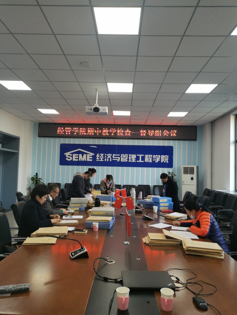 按照学校2020-2021学年第一学期教学工作安排,为强化教学过程管理,保障教学质量,扑克王官网 于11月4日上午,在扑克王 楼A316会议室,组织教学督导组专家进行教学资料检查。检查工作由扑克王官网 教学副院长张丽主持,周霞书记、本科教务员一同参加检查工作。