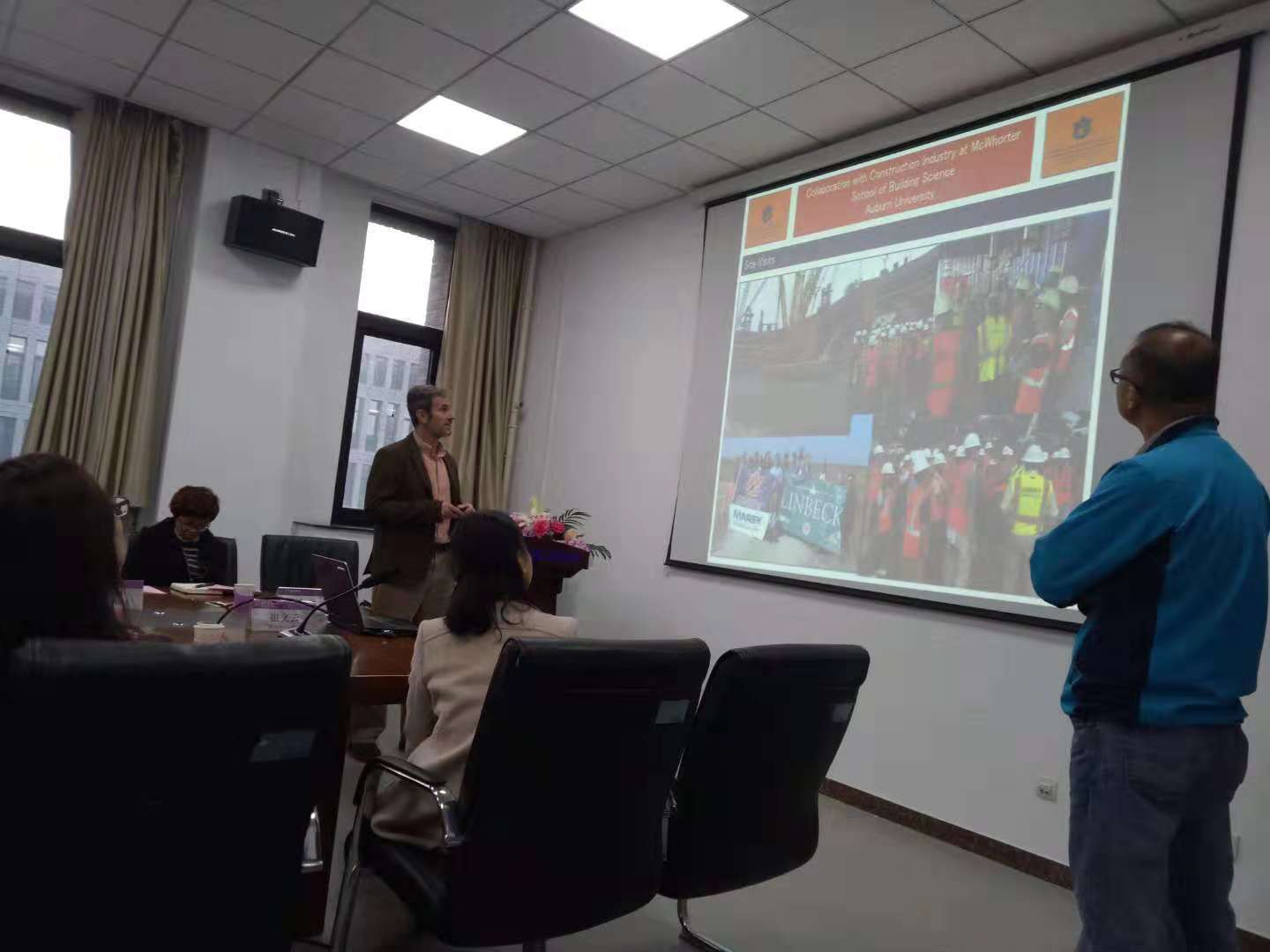 2018年11月29日,中美建筑工程发展及产学合作交流沙龙于北京建筑大学扑克王 楼A座316成功举办。出席本次沙龙的有美国奥本大学麦克沃特建筑扑克王 院长Richard Andrew Burt、美国霍尔德建筑公司高级副总裁Drew Cain Yantis、美国切诺基泵送混凝土公司David Wayne Bylsam、美国奥本大学中国交流项目合作处负责人刘峻山、北京城建二建设工程有限公司总经理董伟、北京城建二建设工程有限公司副总工程师曾卫军、北京城建二建设工程有限公司项目经理杨燕、北京城建二建设工程有限公司机电分公司经营副经理崔文云、北京市第三建筑工程有限公司党委书记齐静立、北京市第三建筑工程有限公司企划部副经理秦伟,扑克王官网 院长姜军、党委书记彭磊、副院长周霞、工程管理系主任戚振强、工程管理系副主任赵金煜、工程管理系教师兼外事秘书花园园、教务员兼奥本交流项目负责人魏祎及工程管理系赵世强教授等也参与了本次活动。