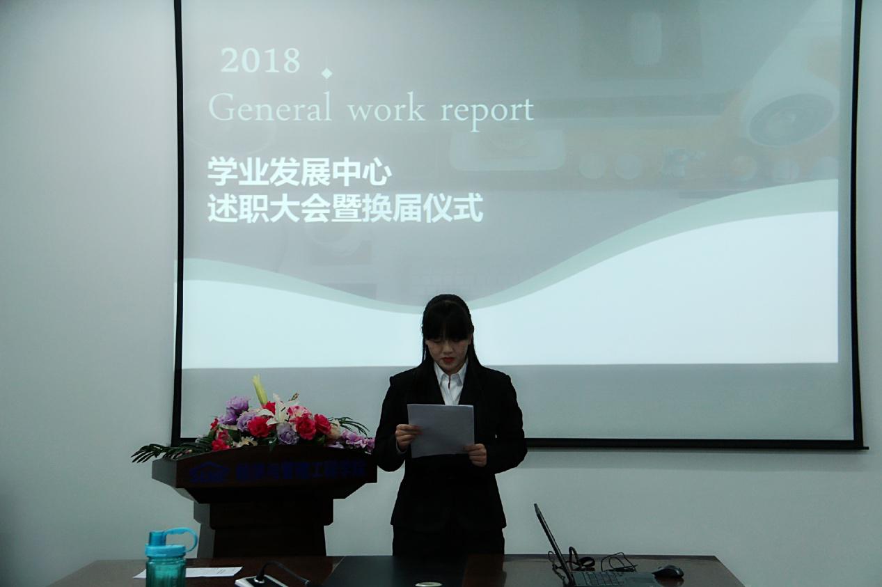 大会伊始,王嫣然老师向大会出席人员介绍了学业发展中心的发展历程,各部门职责和成立一年以来完成的主要工作。随后,由学业发展中心第一届主任李坤同学进行工作汇报,总结过去一年的相关工作。在工作汇报中,李坤谈到,学业发展中心是推进扑克王官网 学风建设必不可少的组成部分,学业发展中心这一年的工作内容:负责2016-2017学年度奖学金核算及2018届毕业生奖学金核算任务以及早晚自习的考勤;承办了2017年校级“我的班级我的家”评比活动;2016-2017年扑克王官网 优良学风班评比;第九届全国大学生房地产策划大赛校内选拔赛等。通过举办这些学风建设活动,增强了扑克王 同学的专业学习动力,提高学生专业素养水平,营造扑克王 良好的学风比赶超氛围,整体促进扑克王官网 学风迈步向前。在汇报的最后,李坤对新一届学业发展中心成员寄予厚望,希望大家可以继续坚定理想信念,再接再厉,将学业发展中心打造成团结一心,和谐进步的学习型团队,牢记“全心全意为同学服务的宗旨,为把学业发展中心打造成令老师满意,令同学信赖的优秀学生组织而不懈努力。