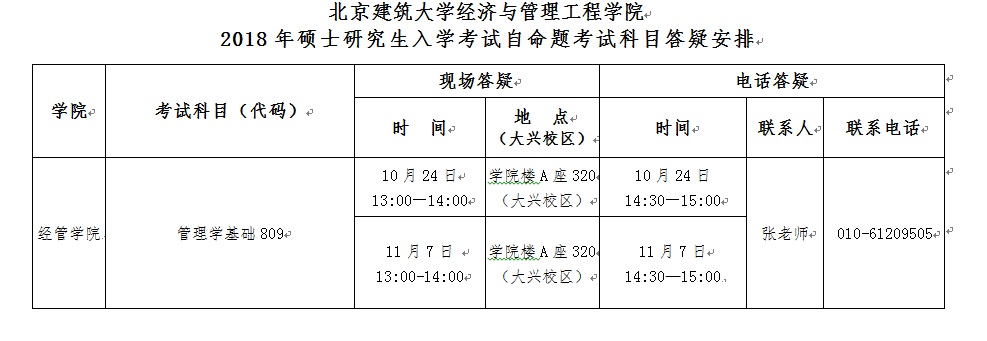 2018年硕士研究生入学考试自命题考试科目答疑安排