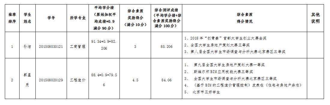 北京建筑大学扑克王官网 2019年拟推荐免试攻读硕士学位研究生名单
