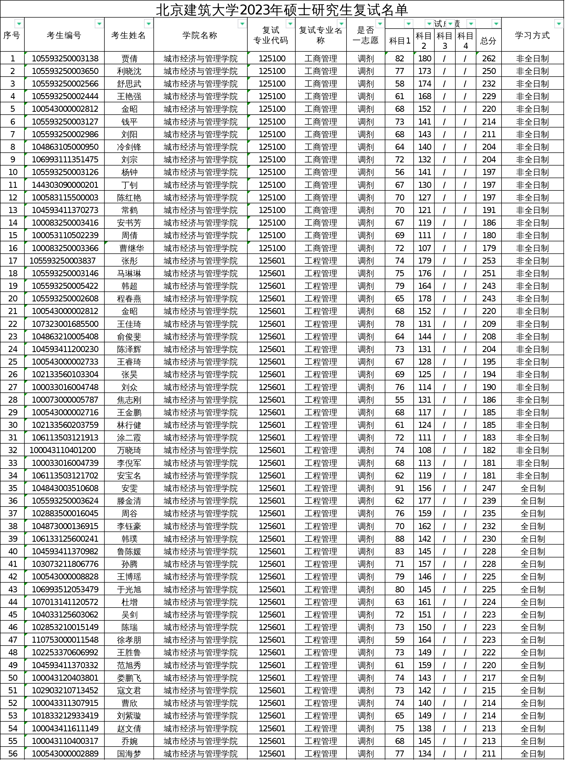 扑克王官网 调剂复试名单(MBA、MEM专业)