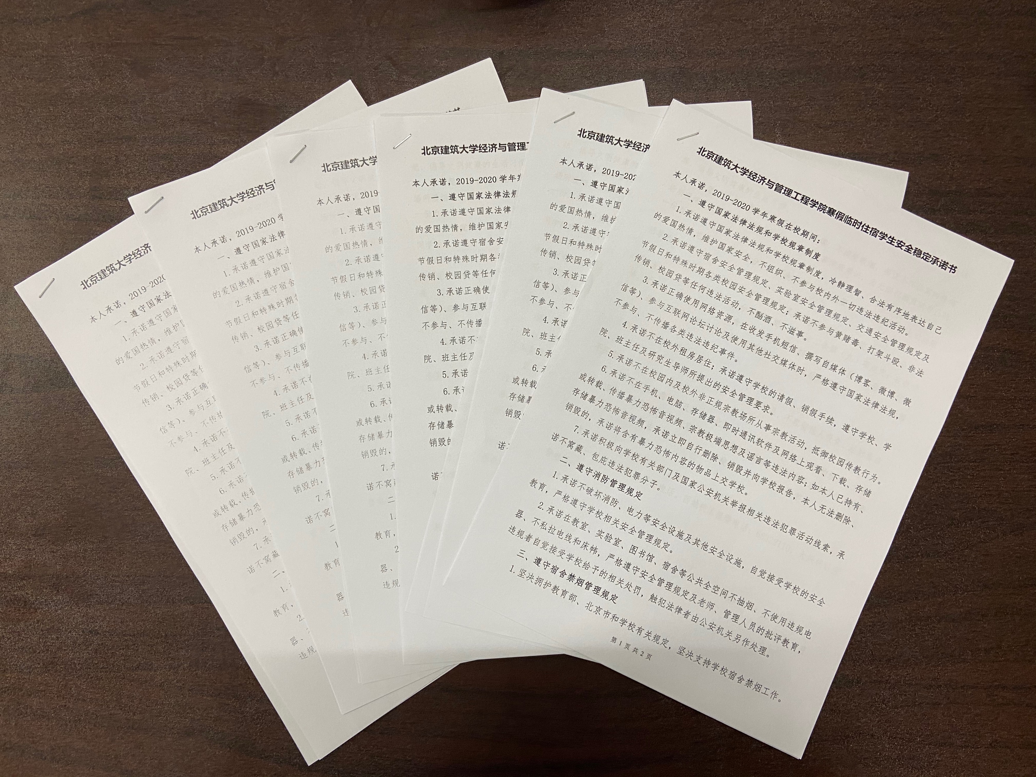 会议最后,全体寒假留校学生阅读并签署了《北京建筑大学经济与管理工程扑克王 寒假临时住宿学生安全稳定承诺书》。