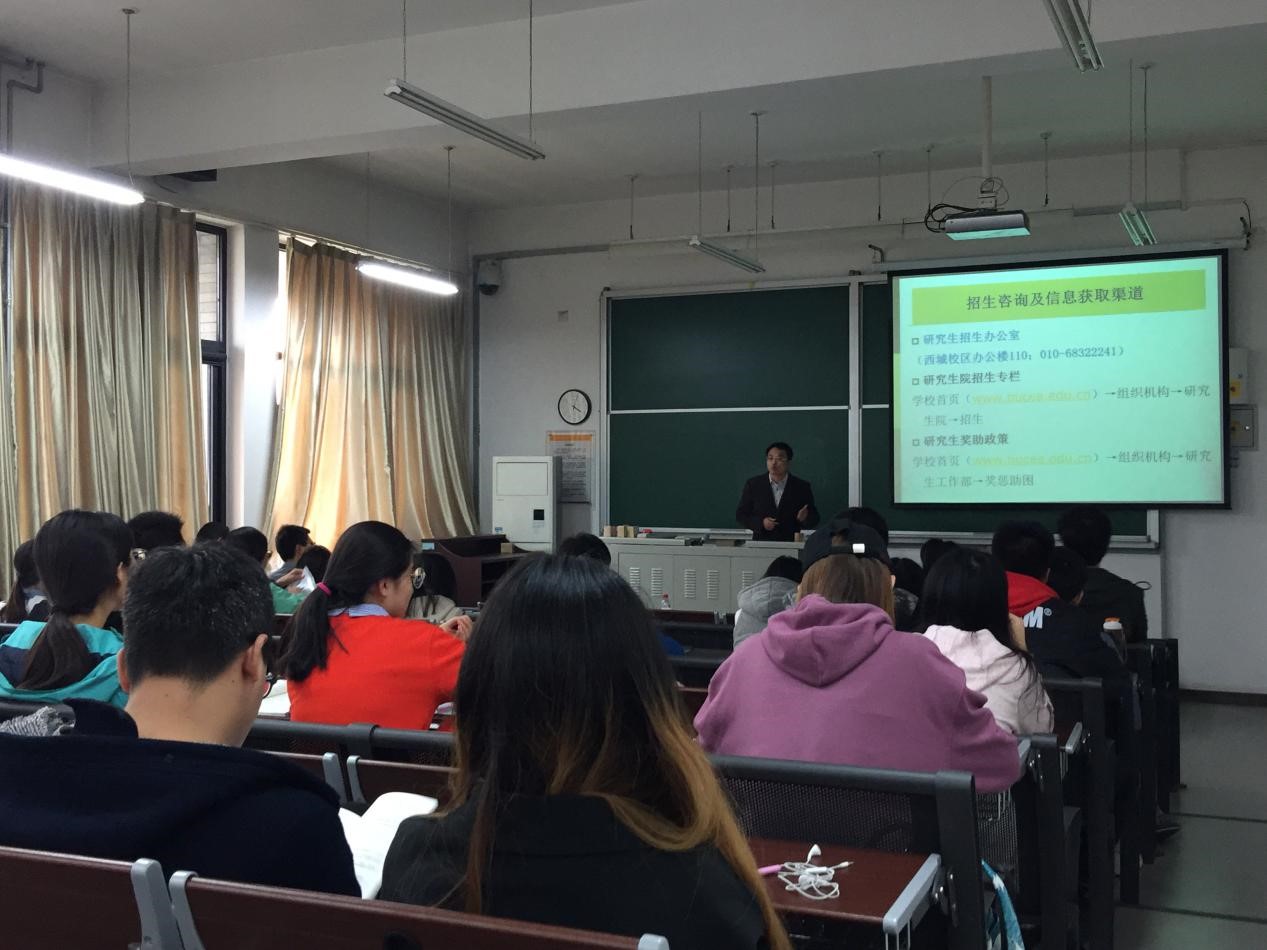 为了科学地指导扑克王 学生考研报考,特别是针对考研同学报考目标不明确,考研政策不清楚的问题,10月24日下午,扑克王 邀请到北京建筑大学研究生院招生办丁建峰老师,来扑克王 给考研同学做考研报考指南和政策分析指导。参加活动的还有扑克王官网 院长姜军、副院长秦颖、分团委书记曹晓云、研究生辅导员任世豪。