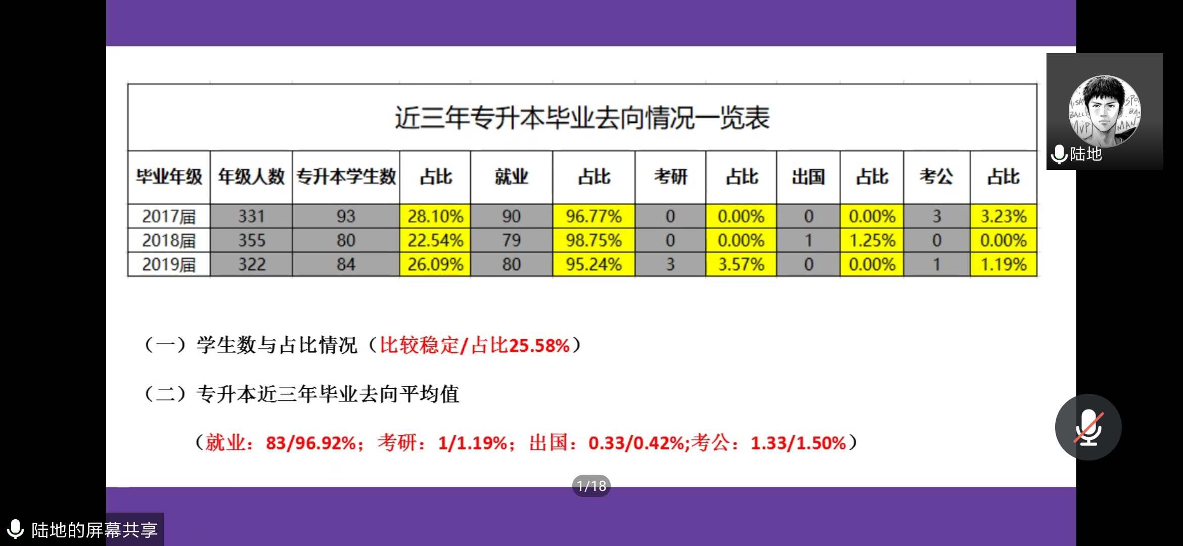 本次分享会邀请到:副院长周霞、党委副书记郝迈、校武装部王梦鸽、辅导员陆地、董礼、专升本优秀毕业生郝雅天、院就业指导中心骨干、2017级全体专升本学生、有入伍意愿学生、退伍学生,会议由2017级辅导员章瑾主持。