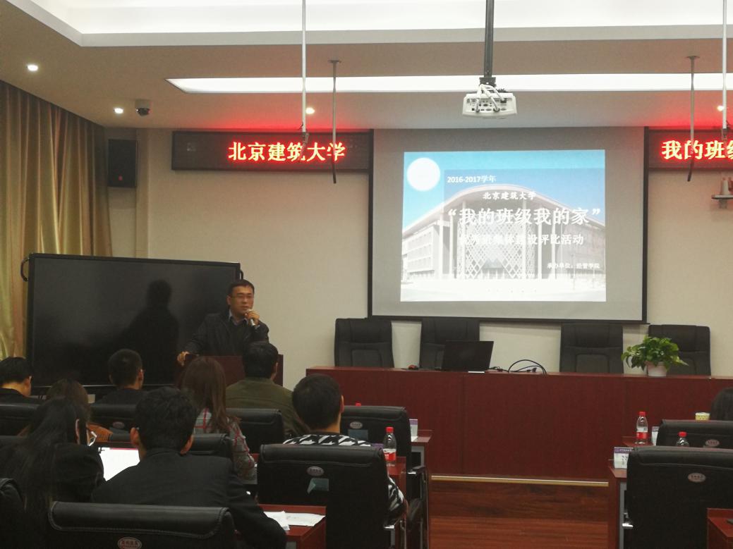为认真学习贯彻党的十九大精神,贯彻落实全国和北京高校思想政治工作会议精神,充分发挥我校班集体在促进学生思想政治教育、服务大学生全面发展中的积极作用,交流经验,宣传典型,充分展示我校大学生群体积极健康的精神风貌,由我校学工部、校团委主办,扑克王官网 承办的2016-2017年度“我的班级我的家”优秀班集体暨北京市先进班集体答辩评审会于11月16日晚在大兴校区扑克王 A413教室举行。学工部副部长蔡思翔,环能扑克王 党委副书记梁凯,机电扑克王 党委副书记陈娟,扑克王官网 党委副书记郝迈,以及各二级扑克王 团委书记、辅导员代表出席活动并担任评委。共有来自全校两个校区九个扑克王 的14个优秀班集体参加答辩。